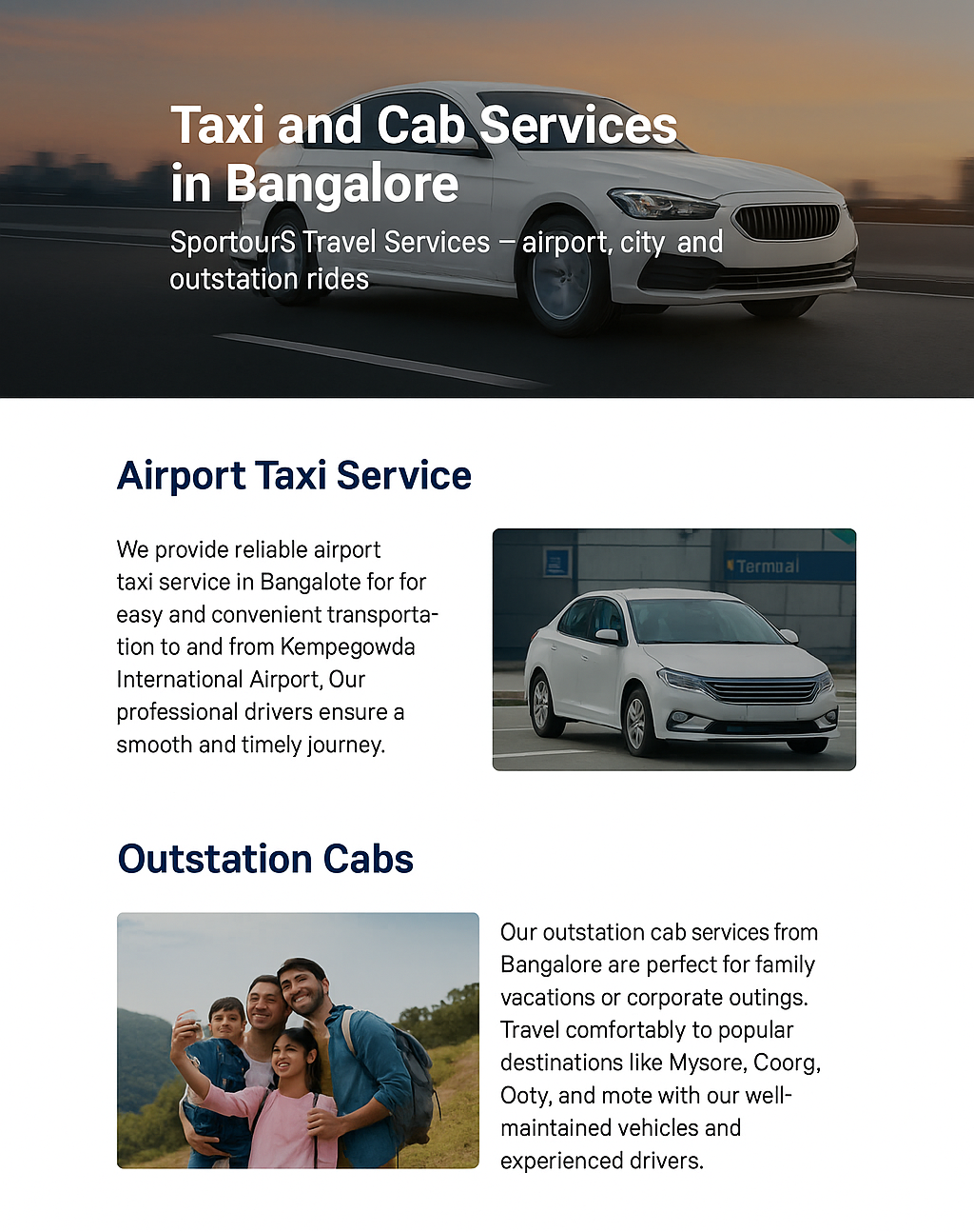Welcome to Sportours Travel Services, your trusted provider of taxi and cab services in Bangalore.